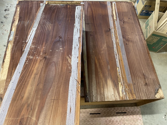 元々の背板は割れや捻じれ曲りなどがありましたので、背板だけ新しく取り替えることにしました。