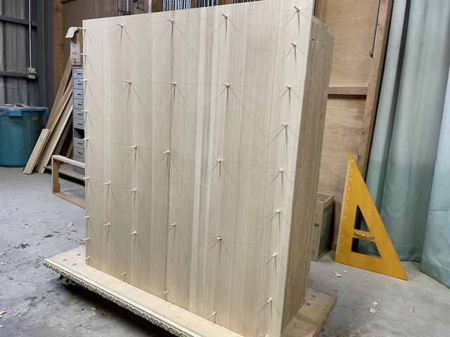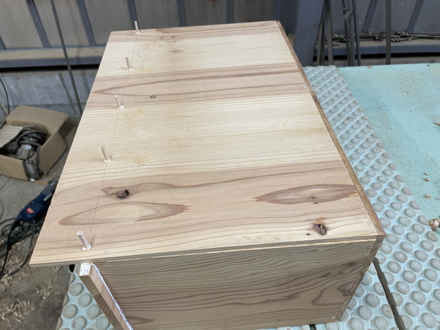 箪笥の幅、奥行きを指定サイズにカットして仮組みしているところです。