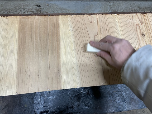 引き出しの底部分や横部分もイボタ蝋を塗ります。